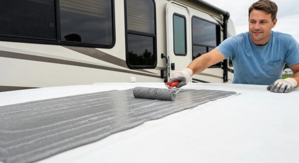 Your First Line of Defense Against the Elements A small roof leak can lead to thousands of dollars in structural damage. We provide comprehensive roof inspections, professional cleaning, and precision resealing of all vents, skylights, and seams. If your roof is already damaged, we offer specialized patch repairs to keep the interior of your rig bone-dry.